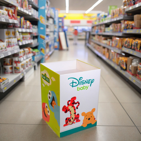 Özel baskılı ekran ünitesi karton Pop çöp kutusu oluklu yüzer süpermarket promosyon kutuları